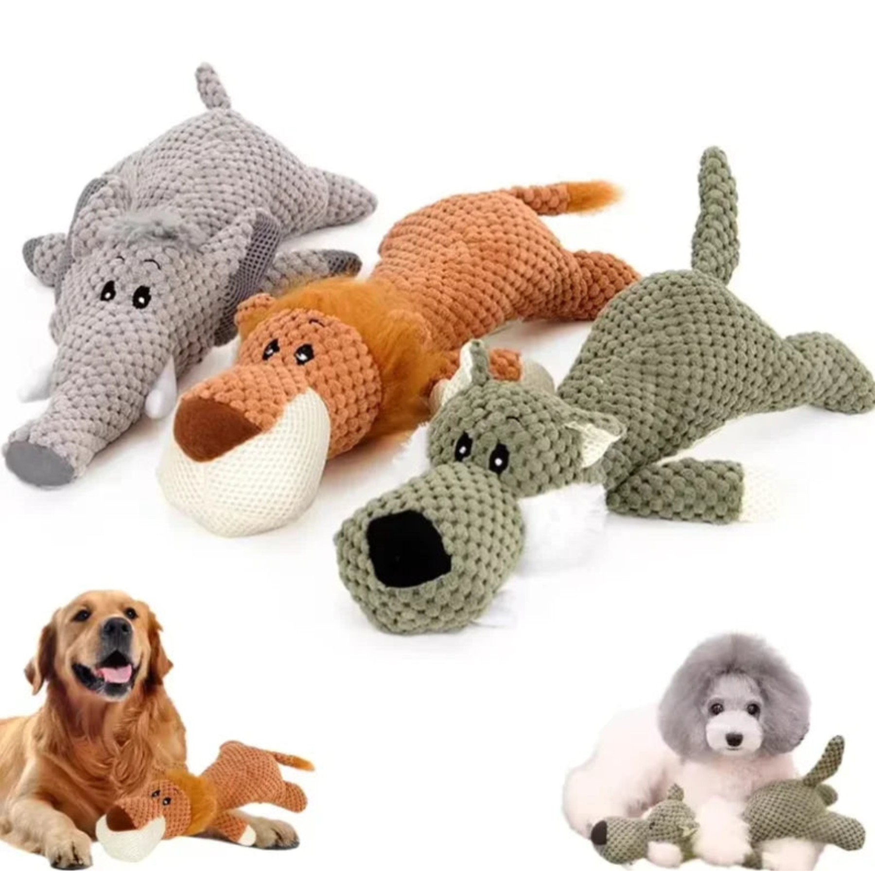 Waarom een echte hondenliefhebber dit kiest: ✅ Duurzaam en bijtbestendig – perfect voor sterke kauwers ✅ Piepend geluid – houdt je hond actief en betrokken ✅ Pluche materiaal – helpt tanden schoon te houden ✅ Keuze uit leeuw, wolf of olifant – fun gegarandeerd ✅ Ideaal voor kleine en middelgrote honden