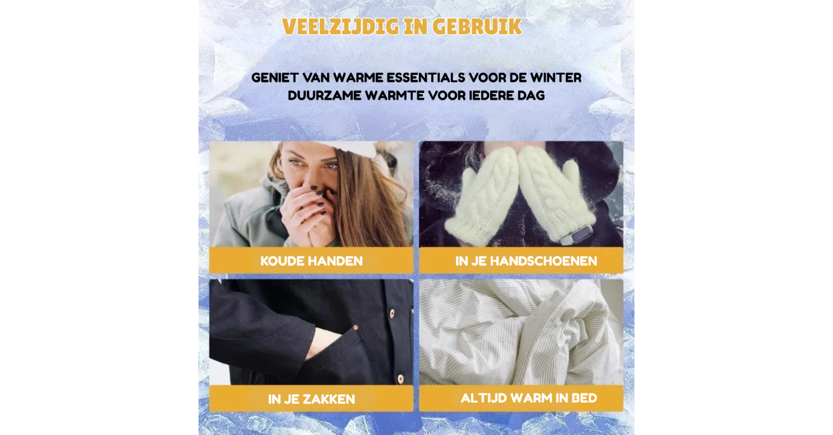 Met HeatWave Essentials heb je nooit meer last van koude handen of voeten. De luchtgeactiveerde technologie warmt binnen enkele seconden op en houdt de warmte tot wel 18 uur vast. Perfect voor wintersport, buitenwerk of dagelijkse kou.