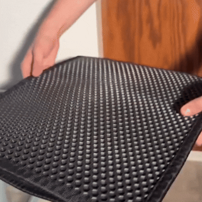 De KattenMat vangt met zijn dubbellaagse honingraatstructuur alle losse kattenbakkorrels op voordat je kat ze door het hele huis verspreidt. Schone vloeren, blij huishouden.