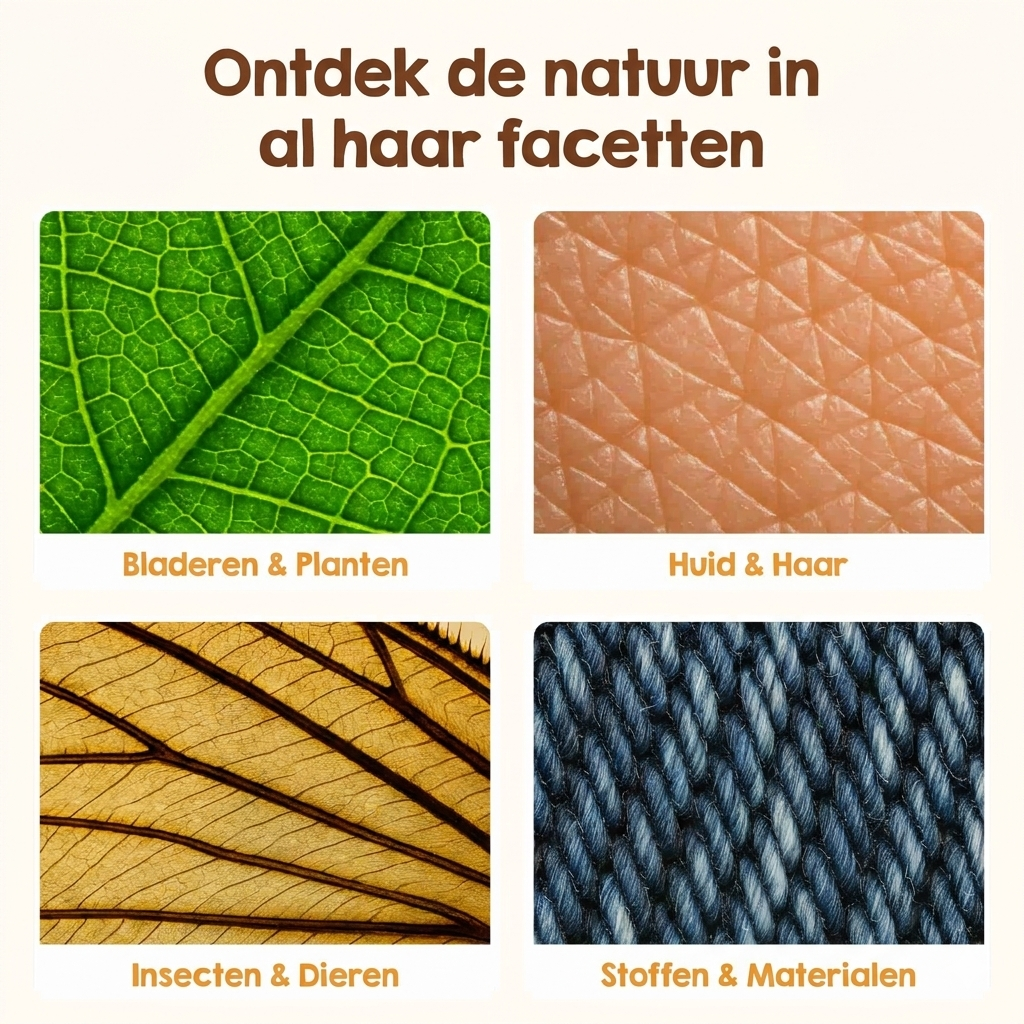 Kinderen leren het beste als ze zelf ontdekken. Dit microscoop maakt de onzichtbare wereld zichtbaar — van bladnerven tot insecten. Zo ontstaat echte verwondering die geen beeldscherm kan vervangen.